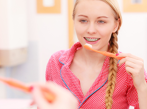 When you get your braces on, Dr. Daniel Grob will give you an interdental toothbrush that can be used to get to those hard-to-reach spots in your mouth. The brush has bristles that can easily remove food residue stuck between the wires in your mouth. We may also suggest using a WaterPik, which pulses a pressurized stream of water to remove excess food particles.